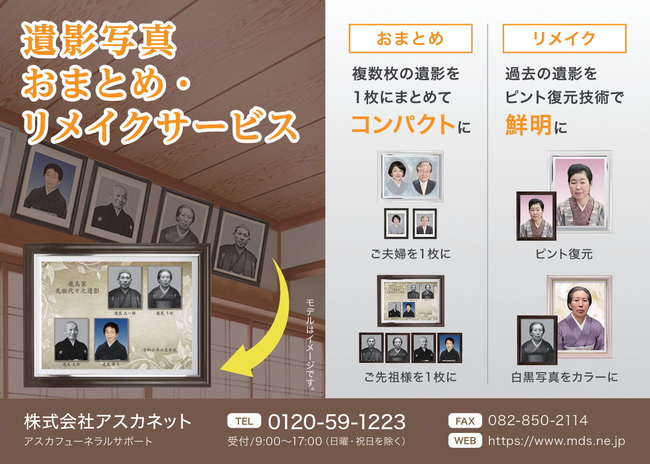 | ㈱アスカネット | 遺影写真加工 | 〒731-0138 広島市安佐南区祇園2-39-1 | 0120-59-1223